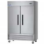 Refrigerator reach-in two-section 49.0 cubic feet capacity electronic thermostat with digital LED display field reversible hinged doors with locks (6) epoxy coated adjustable wire shelves bottom mounted self-contained refrigeration stainless steel exterioModel AR49