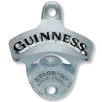 Always be at the ready with Guinness! Retro wall mounted bottle opener. Comes with two mounting screws. Durable zinc plated cast iron.