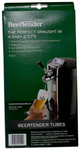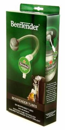 Designed for use with the Krups BeerTender, BeerTender tubes connect the Heineken or Heineken Premium Light DraughtKeg to the BeerTender tap, Patented BeerTender tube is designed specifically for the Heineken and Heineken Premium Light DraughtKeg, Ensures a perfect fit between BeerTender DraughtKeg, To ensure that every glass of beer tastes as perfectly poured, a new BeerTender tube must be used with each new Heineken or Heineken Premium Light DraughtKeg you load into the BeerTender, Each box contains 6 individually wrapped BeerTender tubes