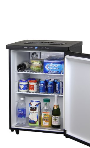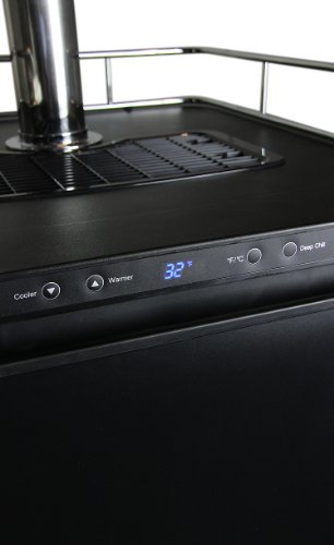 The Kegco K309B-2 Dual Faucet Kegerator with Black Matte Finish adds digital functionality and a wider available temperature range to one of the best kegerators you can find. It still has all the features you’ve come to appreciate from other high quality Kegco models, such as attractive styling, a removable built-in drip tray that is easy to clean, a chrome guardrail that prevents glasses from sliding off the top, easy rolling casters and a complete two keg direct draw system. Now you have the ability to see your specific temperature setting and set it easily with the push of a button, in addition to having a wider available temperature range for more precise temperature control. The K309 has Fan-Forced cooling, giving it one of the coldest temperature ranges of any beer dispenser on the market today. The fan helps provide even cooling throughout the unit. Temperature can be set as low as 32 degrees to dispense ice cold beer. The interior of this keg beer cooler is spacious enough to easily hold any full size keg, including Miller kegs, Coors Kegs and rubber kegs. It can also hold up to two 5 Gallon D System kegs or up to three 5 Gallon Cornelius Ball Lock Home Brew kegs, allowing you to dispense more than one beer at a time. It comes with 2 adjustable shelves, allowing you to space them far enough apart to hold 2-liter bottles or gallon jugs. With the wide temperature range available in the K309, you can even use it to store wine!