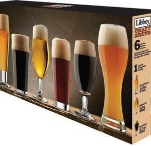 This set includes one 15.25 ounce classic pilsner glass, one 20 ounce English pub glass, one 16.5 ounce Belgian ale glass, one 20 ounce craft pub glass, one 14.75 ounce porter/stout glass, and one 23 ounce wheat beer glass. It’s a great bachelor, housewarming, or host gift, as well as an excellent addition for the beer lover’s collection. It is part of the Libbey Craft Brews collection. Glasses are dishwasher safe and made in the USA.