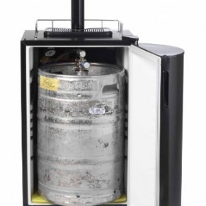 This freestanding, refrigerated Kegorator dispenses beer easily and quickly to even the thirstiest crew. It includes swivel casters, making it mobile enough to roll around the clubhouse, pool area or anywhere you want to get the party started and includes a 2.5-pound CO2 bottle, good for about four 15 gallon kegs, and weeks worth of use. Unit features a semi-gloss black tower and guard rail, with a durable black counter top, spring loaded top-mounted tapper and dual CO2 regulators. The unit’s “D” coupler fits US Sankey keg valves and the unit’s interior can hold two 5 gallon Cornelius kegs (8.5″ diameter x 24.75″ H), two 5 gallon D System kegs (9″ diameter x 23″ H), one 7-8 gallon 1/4 barrel pony keg (15.5″ diameter x 13.5″ H), or one 14-16 gallon 1/2 barrel keg (15.5″ diameter x 23″ H). Interior temperature of unit is 33-37° F.. Product Dimensions: Width 20.3″ x Depth 26.2″ x Height 32.1″ and 77 pounds.