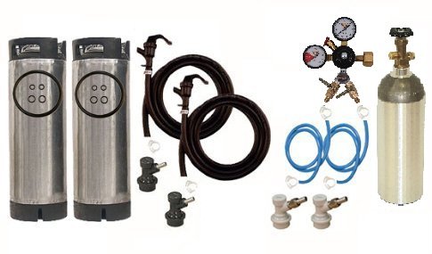 This kit includes all new equipment and 2 reconditioned ball lock kegs. MAY contain racetrack lid kegs. Kegs may or may not have pressure relief valve.New Equipment and 2 Reconditioned/Used Kegs