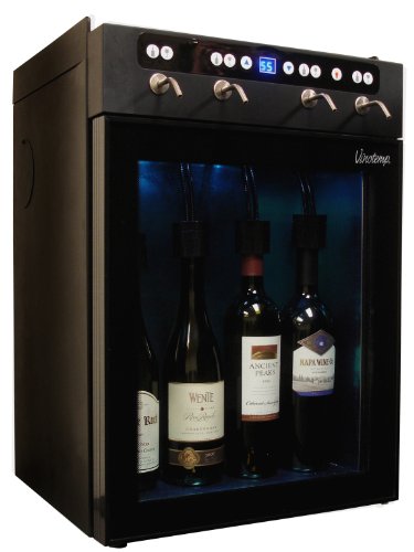 The state-of-the-art, patented VT-WINEDISP4 dispenses and preserves four-Bottles of red or white wine. It not only cools your wine but helps keep wine fresh for several weeks. With easy push button controls, you can easily dispense a perfect glass of wine (10ml) with just a touch of a button. This wine dispenser and preserver is perfect for use at home, restaurants or tastings.
