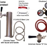 Includes 2 1/2″ Chrome Tower, Chrome Faucet with Handle, 4 feet of 5/16″ Red commercial grade air hose and 5 feet of 3/16″ commercial grade beer line, Stainless Oetiker Clamps, Black Lever Sanke coupler, 2 gauge regulator(built using American made body with high quality components) with check valved shutoff. Assembled and ready to go! This kit contains very high quality components at a very reasonable price.